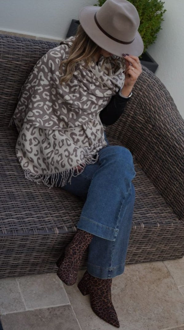 Ajoutez une touche sauvage à votre look avec cette écharpe imprimé léopard, parfaite pour toutes les occasions. Polyvalente et stylée, elle se marie facilement avec vos tenues décontractées ou habillées.