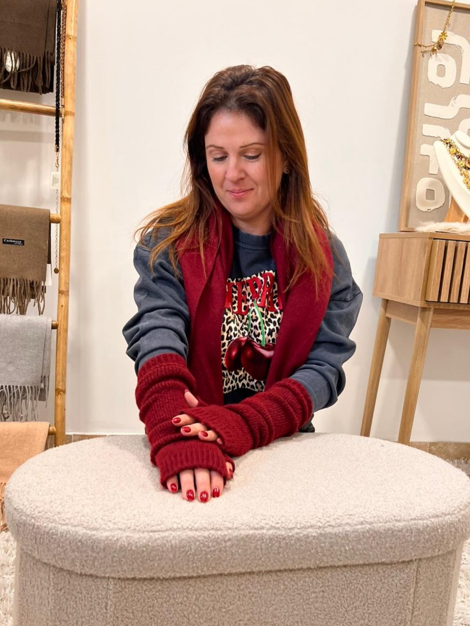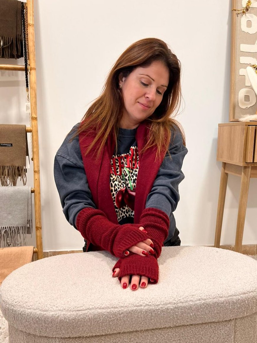 On adore nos mitaines en maille bordeaux idéales pour garder les mains au chaud avec élégance pendant les journées froides. Votre petit plus de confort et style!