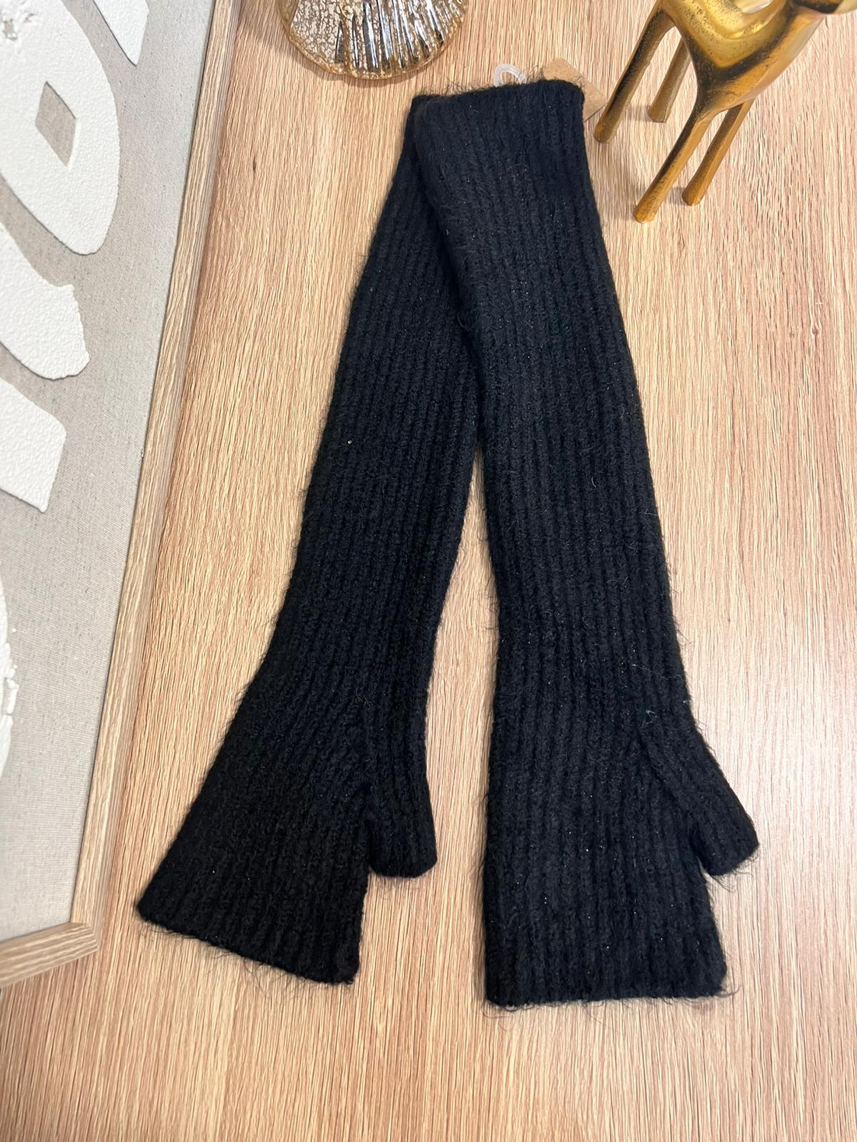 On adore nos mitaines en maille noire idéales pour garder les mains au chaud avec élégance pendant les journées froides. Votre petit plus de confort et style!