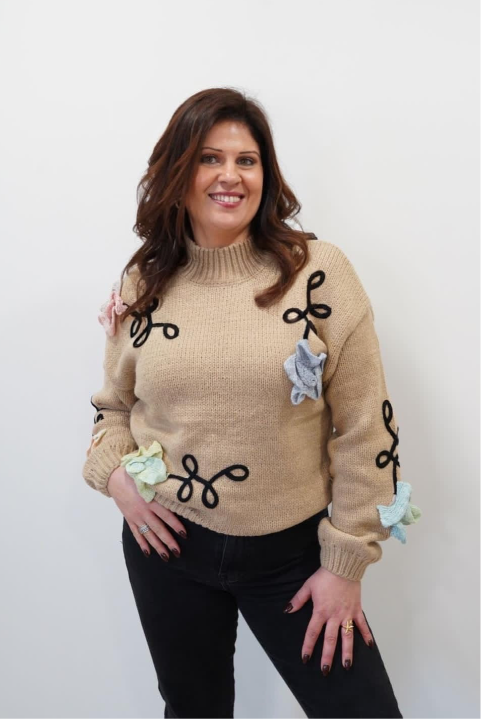 Ce pull couleur camel avec des fleurs est un choix élégant pour toutes les occasions. Le design unique des fleurs apportera une touche de couleur et d'originalité à votre tenue. Fabriqué avec des matériaux de qualité, il vous gardera au chaud tout en vous donnant un style sophistiqué. Parfait pour les journées fraîches d'automne ou d'hiver.