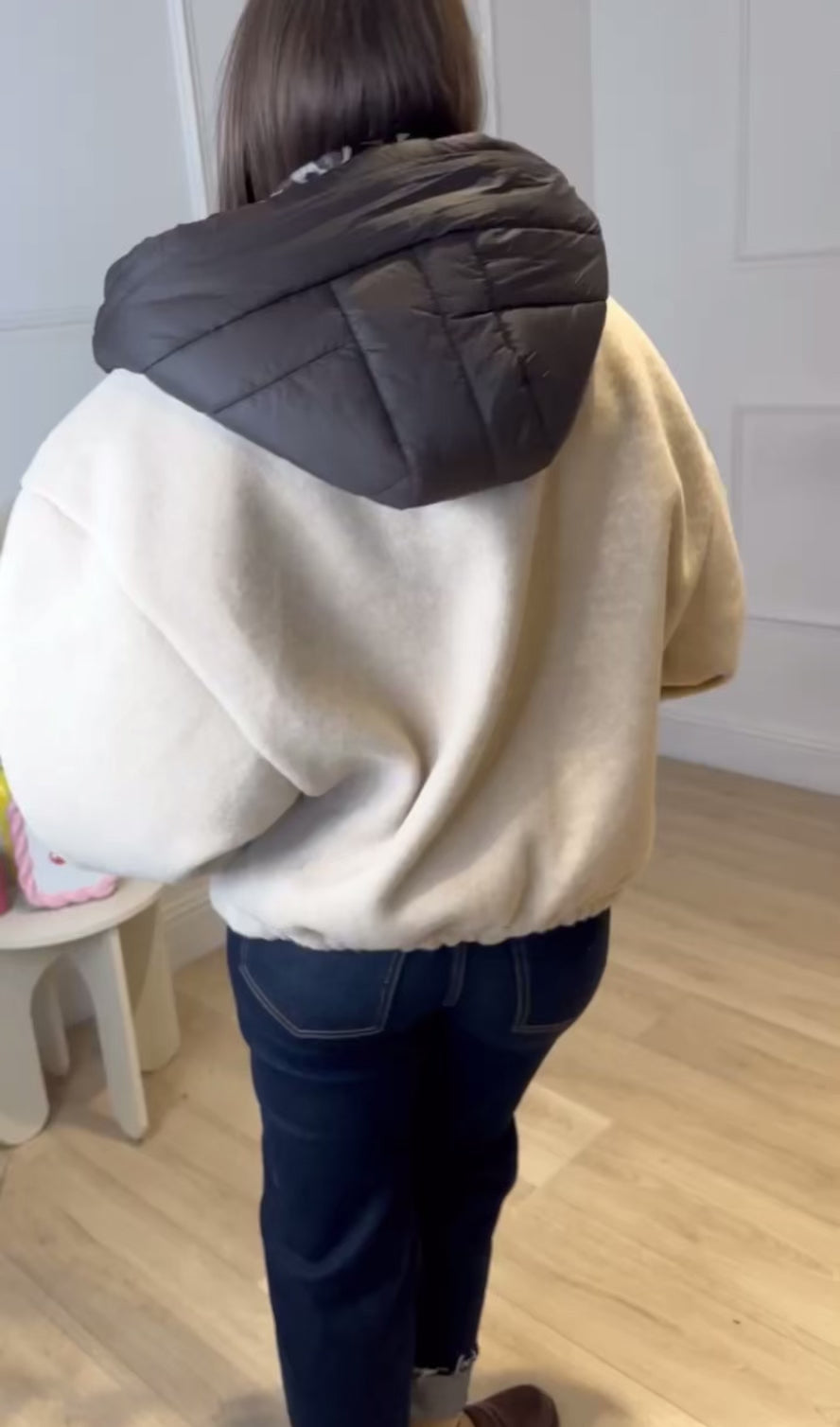 Craquez pour notre veste/blouson beige/marron. C’est la pièce cocooning et stylée de la saison ! On adore sa matière ultra douce, sa coupe oversize et sa capuche amovible doublée d’un joli imprimé léopard.